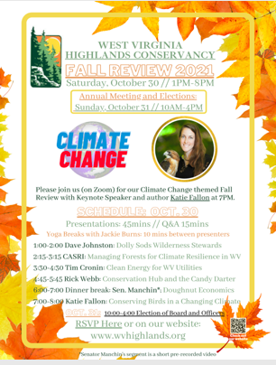 The West Virginia Highlands Conservancy is a non-profit The purposes of the Conservancy shall be to promote, encourage, and work for the conservation—including both preservation and wise use—and appreciation of the natural resources of West Virginia and the Nation, and especially of the Highlands Region of West Virginia, for the cultural, social, educational, physical, health, spiritual, and economic benefit of present and future generations of West Virginians and Americans. |