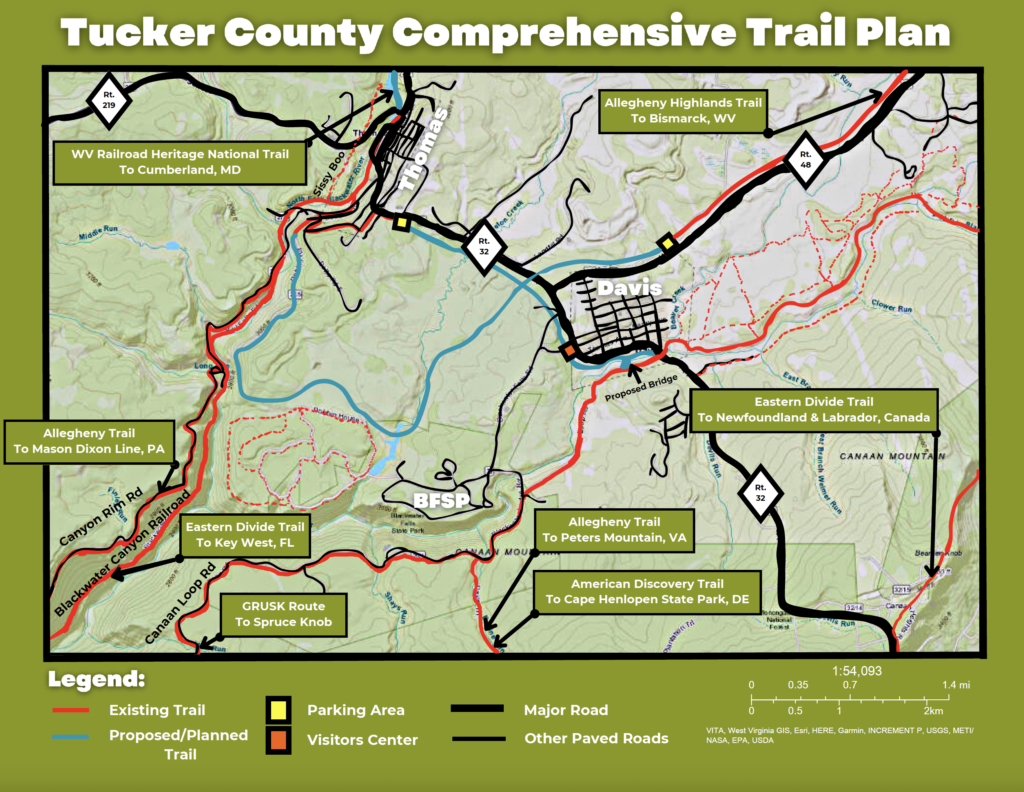 Another proposed section of the Allegheny Highlands Trail will link the two existing sections together via the Francis Grade between Davis and Thomas. This section appears as a trail on Western Pocahontas Property future development maps and would be an incredible addition to Tucker County’s rail-trail system.