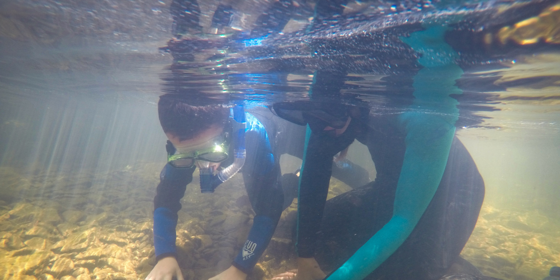 Attendees get a chance to explore local underwater landscapes that are rich in biodiversity featuring fascinating fish, aquatic benthic macroinvertebrates or “stream bugs,” and unique geologic features. Each snorkeling adventure becomes a living classroom, allowing FOC to showcase the delicate balance of these ecosystems and why it is important to care for them.