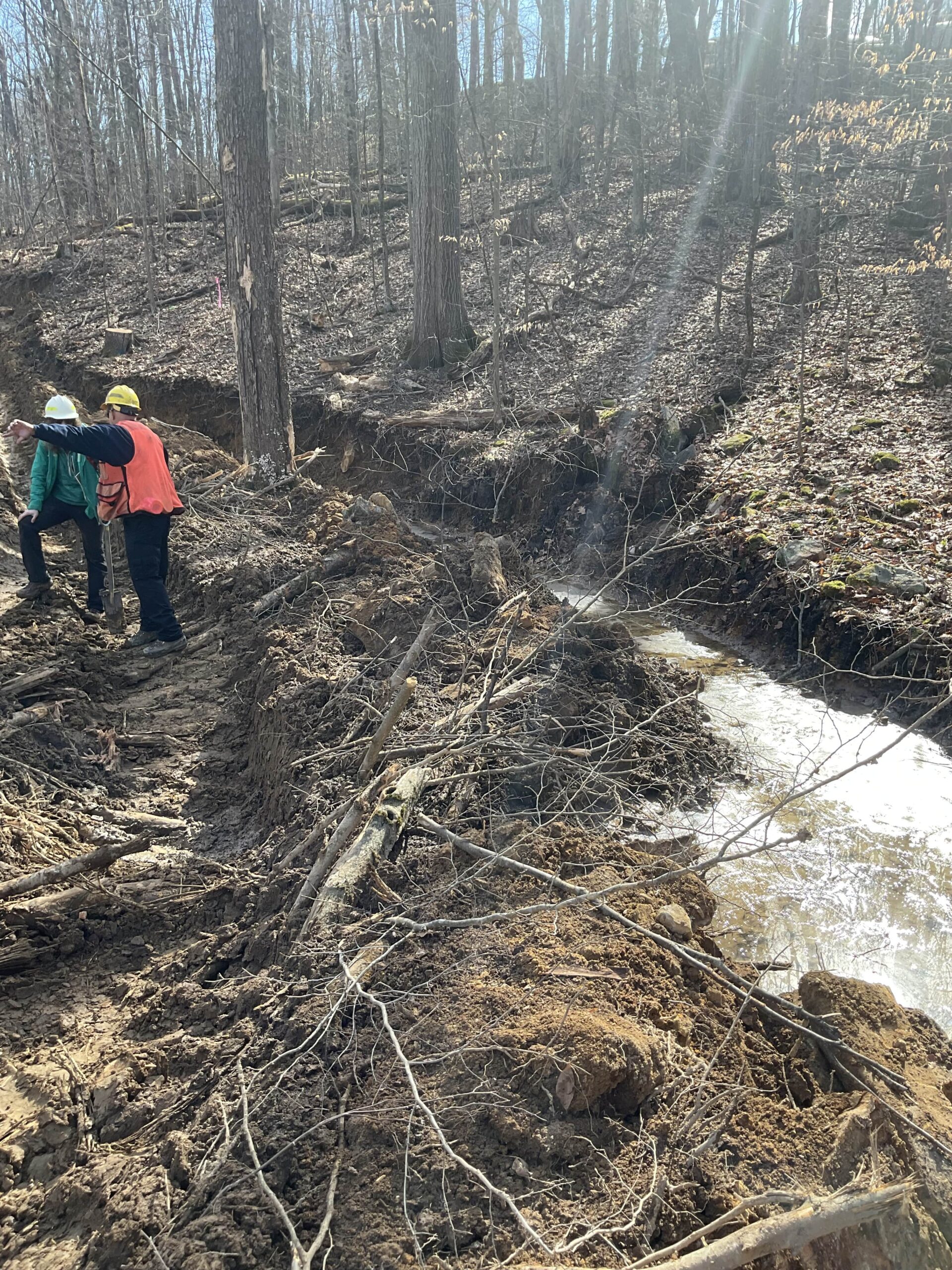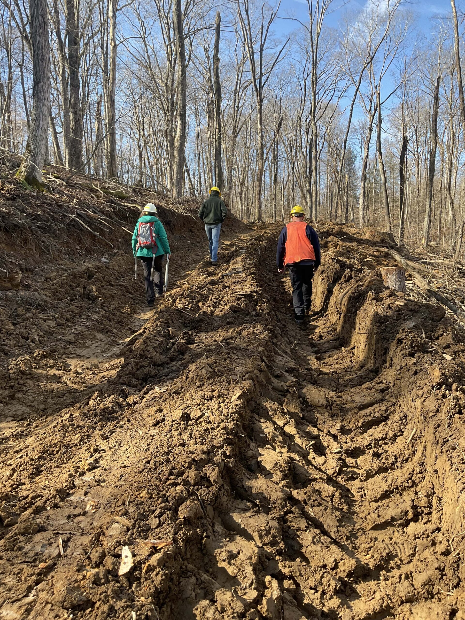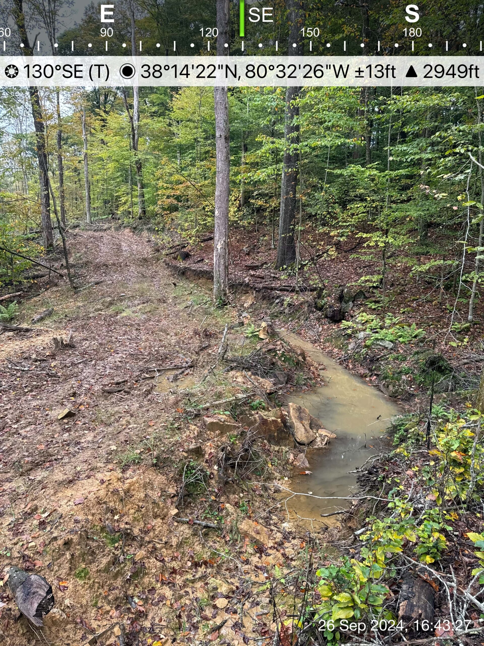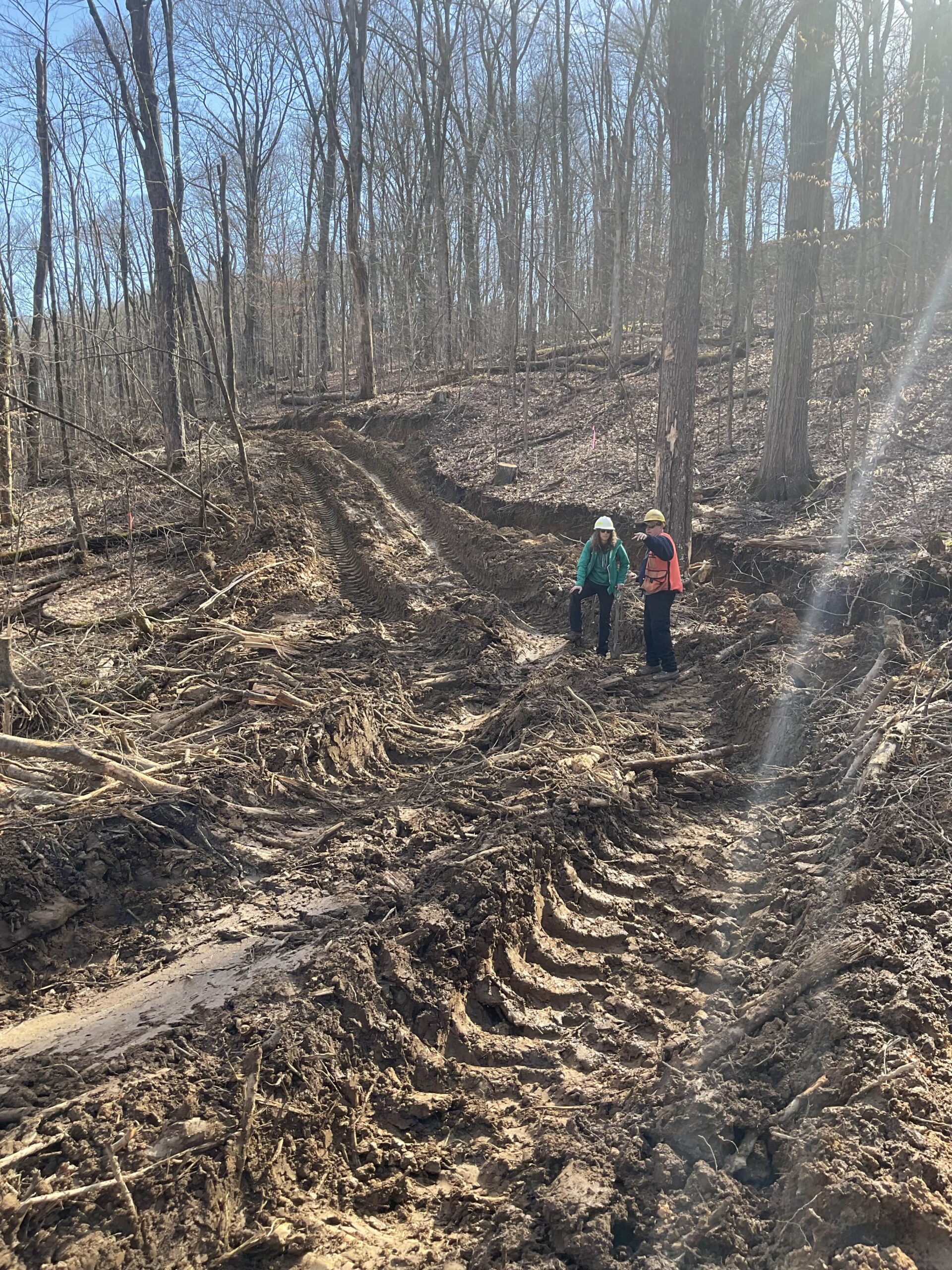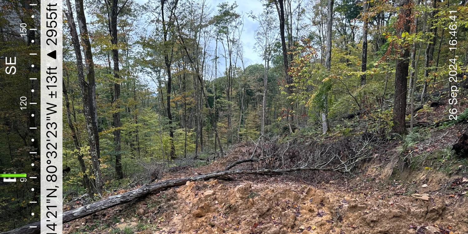 These photos, dated February 6, 2024, show new logging roads in the North Fork of Cherry River watershed in the Monongahela National Forest. The photos were pseudonymously provided to us on September 25, 2024, along with a message expressing alarm about the lack of project planning and oversight.