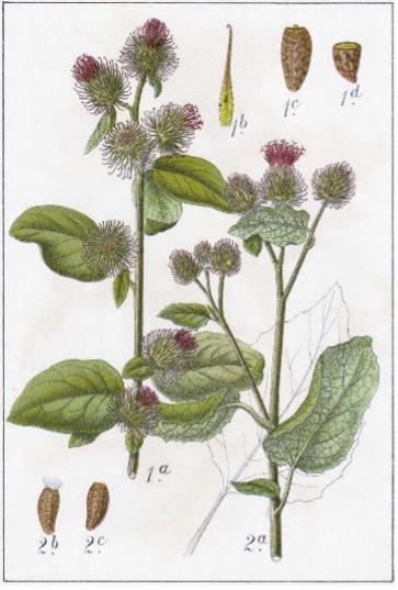 Arctium minus’s common name is burdock. This biennial in the Asteraceae family is the original inspiration for the ultimate invention of Velcro.