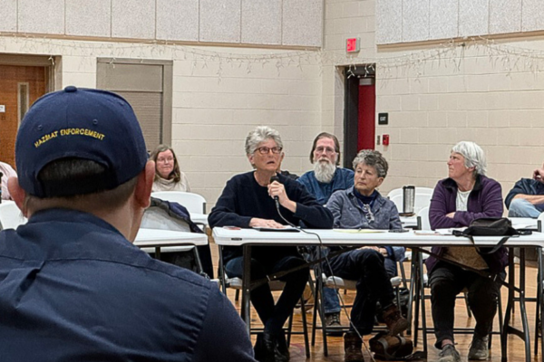 Photo Caption: PHMSA Deputy Administrator Tristan Brown (foreground) listens to Georgia Haverty, a Giles County landowner (center), during a Bent Mountain community meeting on March 13. Photo…
