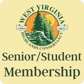 Become a Student or Senior Member of the West Virginia Highlands Conservancy with an annual gift of $15. Your gift will help us continue our 50-year legacy of protecting clean air, clean water, forests, streams, mountains, and the health and welfare of the people that live here and those who visit.